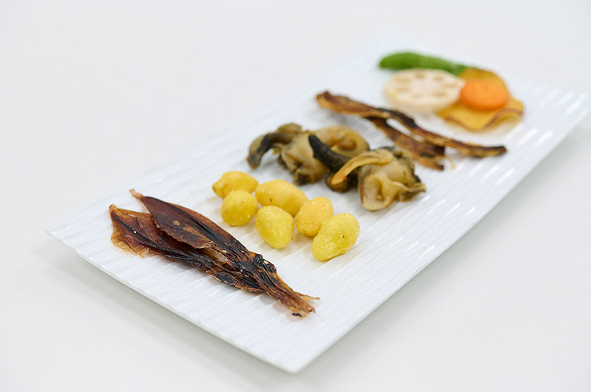 中川さん:ちょっと変わった商品名なのも、ブランディングの一環です。日本海産のホタルイカをまるごと干しあげた0番の「ホタルノヒカリ」は、ブランド名にもなっている通り、このブランドの原点。能登地方伝統の魚醤「いしり」を隠し味に使うことで、味に深みを持たせています。肝の味わいもしっかり残っていて、日本酒との相性は抜群です。