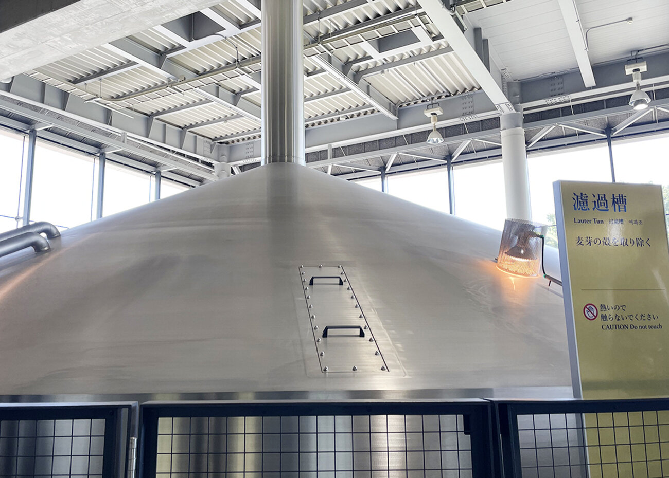 仕込エリアには5つの設備(仕込槽・仕込釜・濾過槽・煮沸釜・沈殿槽)があります。この工場にある仕込設備は、こちらの工場見学ルートで全て見ることができます。