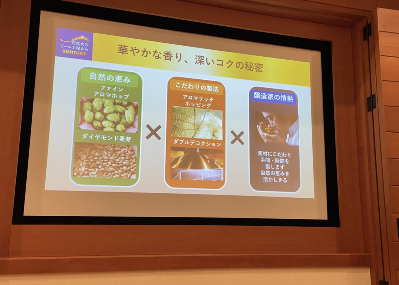 ザ・プレミアム・モルツは「世界最高峰のビールをつくりたい」という想いから開発に10年をかけ、醸造家がこだわり抜いた「“ホップの花のような上品な香り”と“深いコクと味わい”」を実現。その目指した味わいはヴァイタートリンケン(「次の一杯がまた飲みたくなる、次の機会にもまた飲みたくなる」という意味のドイツ語)です。そのためには「“華やかな香り”と“深いコク”」が必要となります。