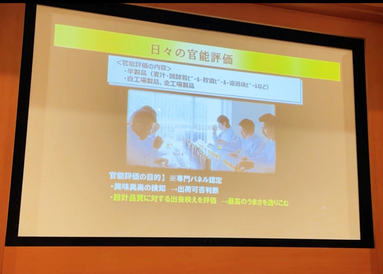また醸造家は日々、官能評価を行っております。官能評価とは、各々の工程で出てくるサンプル(麦汁・濾過後ビールなど)と全工場の最終製品を集めて、問題がないことの確認・設計品質に対する出来映えを評価することです。これにより、「最高のおいしさ」をつくりこんでいます。