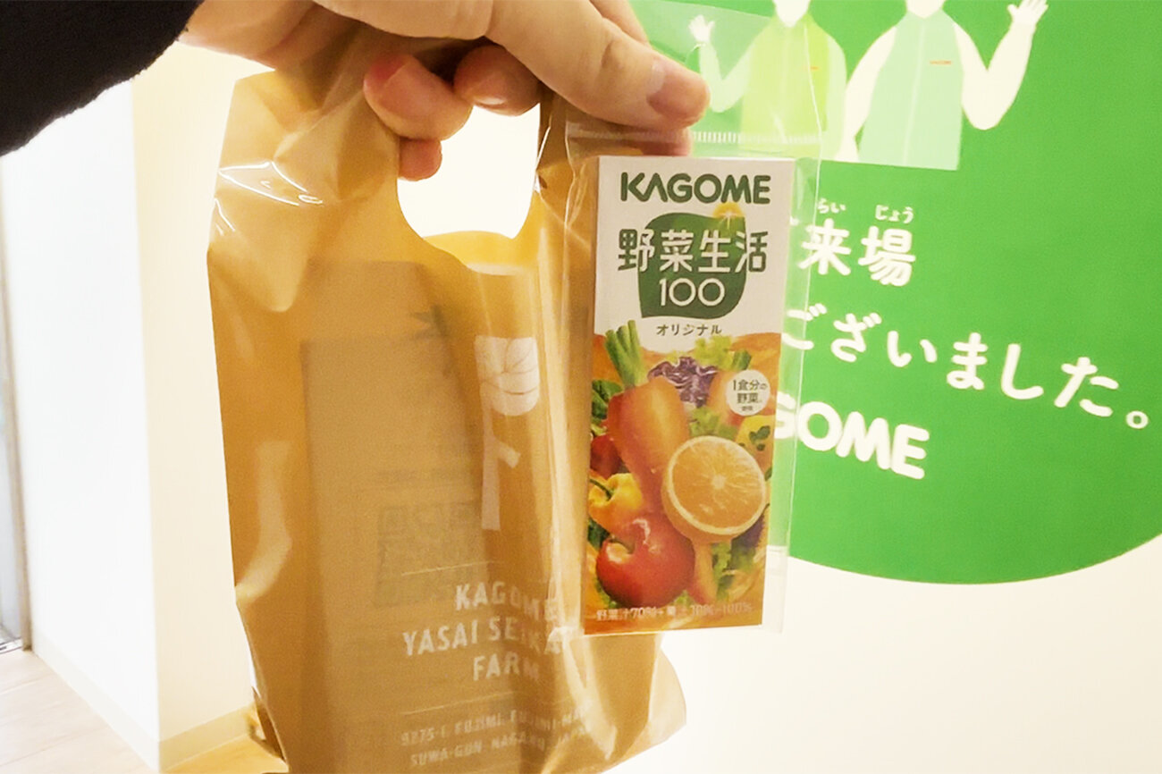 最後には野菜生活100と、非売品のメモ帳がお土産に。メモ帳は野菜生活100と同じサイズです。この受け取り方もビックリなのですが・・・それは訪れてのお楽しみです!