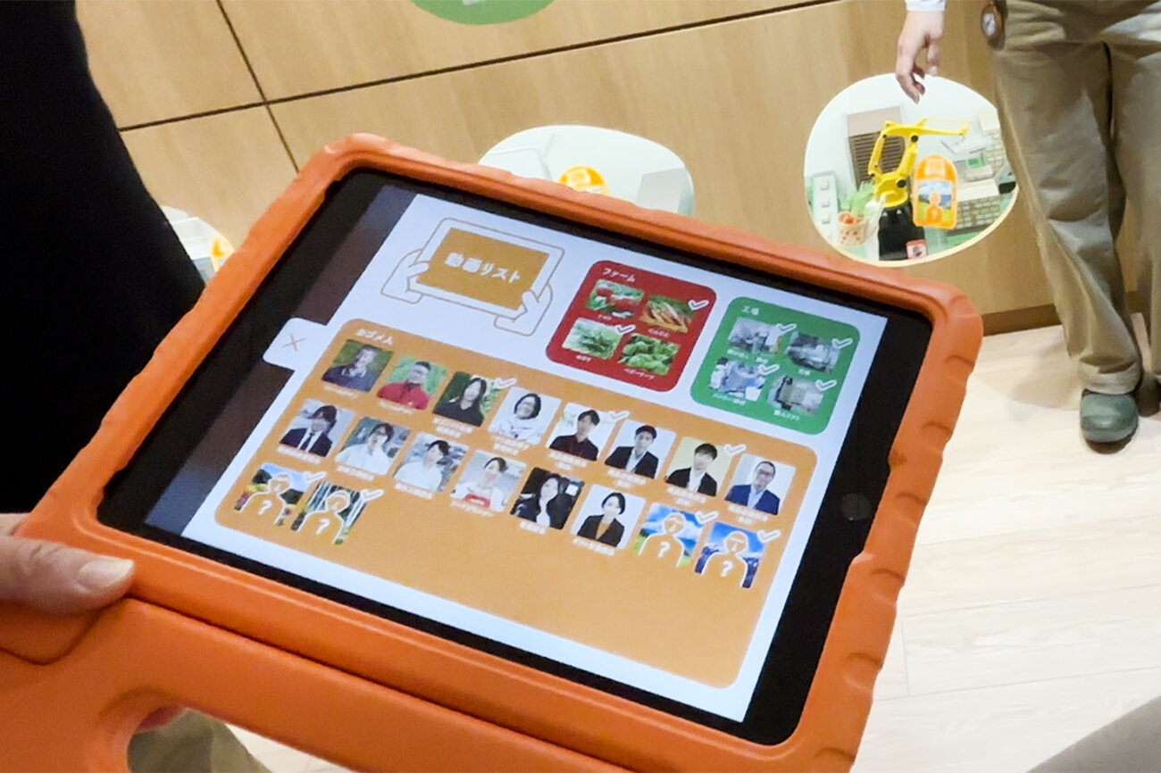 工場探検の終わりでは、カゴメ社員の皆様の動画を見られます。農家~フィールドマン~工場の方々~営業までの働く皆様の笑顔が見られます。