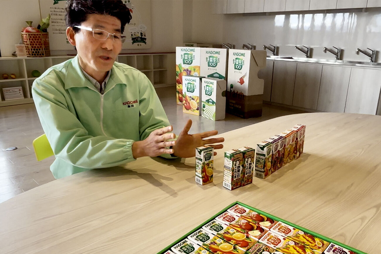 中村さん:「カゴメ富士見工場」では野菜生活100などの紙パック製品を中心に、年間で約4.6億本を生産しています。1日で計算すると約38万リットルの飲料を作っています。