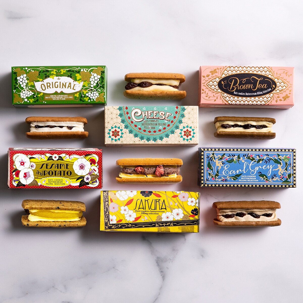 オーツクッキーでバタークリームをサンドした、Huffnagelのバターサンドを6個詰め合わせたギフトボックスです。 アールグレイ、セサミポテト、チーズ、ほうじ茶、オリジナルに加え、季節限定フレーバーの桜あんバターをセレクト。 それぞれ異なる風味と素材の個性を楽しめる、華やかな詰合せとなっています。