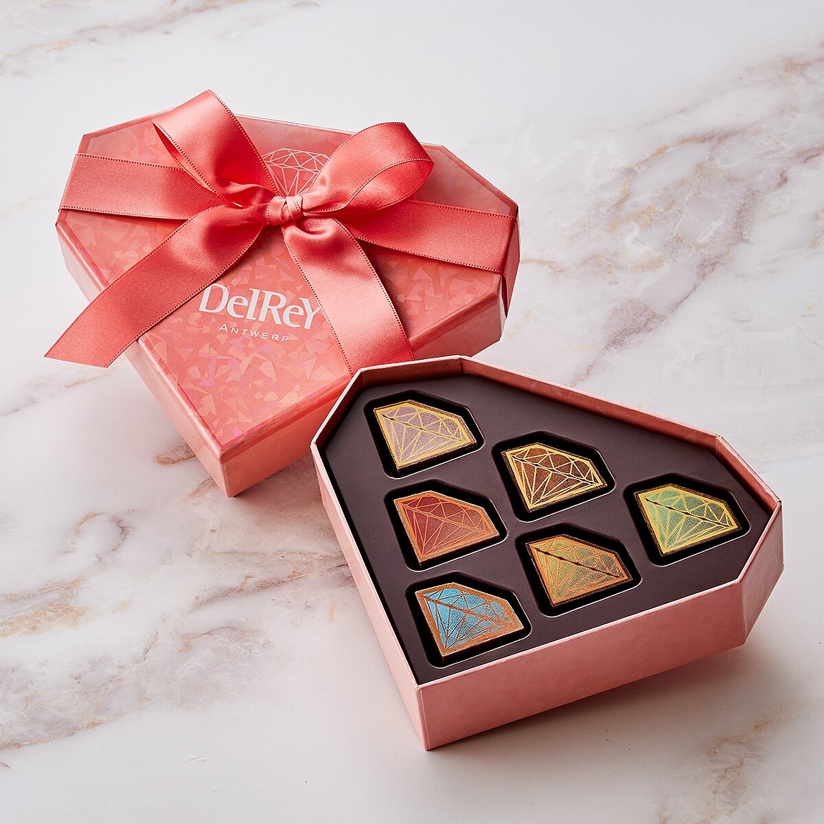 ダイヤモンドみたいにキラキラしたチョコレートで、箱を開けた瞬間から高級感がすごいです。ひとつひとつ味もちゃんと個性があって、まるでジュエリーをプレゼントしてもらったみたいな特別な気分になれます!