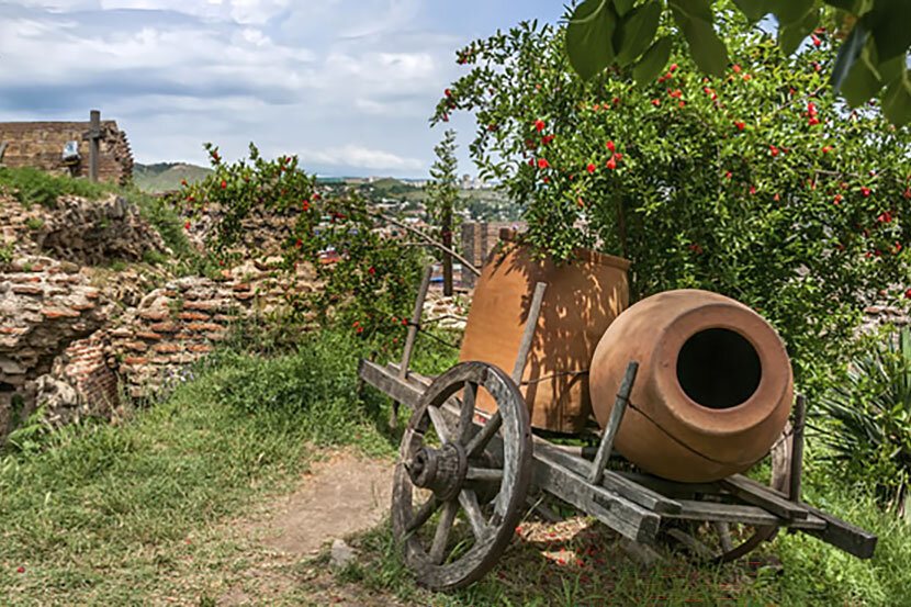このワインはジョージアのカヘテ地方で生まれたオレンジワイン。ジョージアは世界最古のワイン産地で、8000年以上前からワイン造りが行われています。昔から粘土製の壺であるクヴァリを地中に埋めて発酵させる醸造法を行っており、その独特で伝統的なワイン製法は2013年にユネスコ世界無形遺産に認定されました。