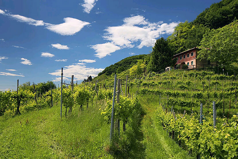 ソアーヴェ城のある丘陵地帯に広がる各付け畑