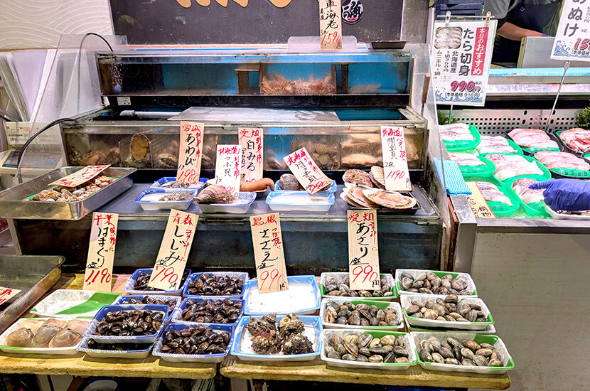 渋谷東急フードショー地下1階「魚力」。春になってきて貝が美味しい季節になりましたね。この時期は貝類が産卵を控え、身がふっくらして甘みや旨味が増す最も美味しい時期と言われています。