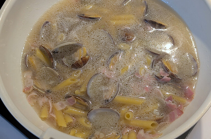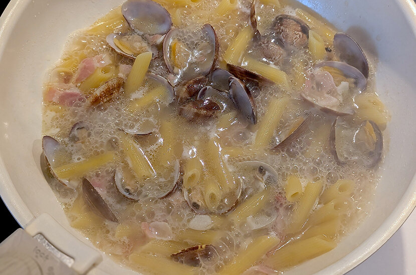 アサリとベーコンの旨みを吸ったペンネの美味しいこと・・・。ワンパンで作れるので、忙しい日でも洗い物を少なくできるのも嬉しいですね。