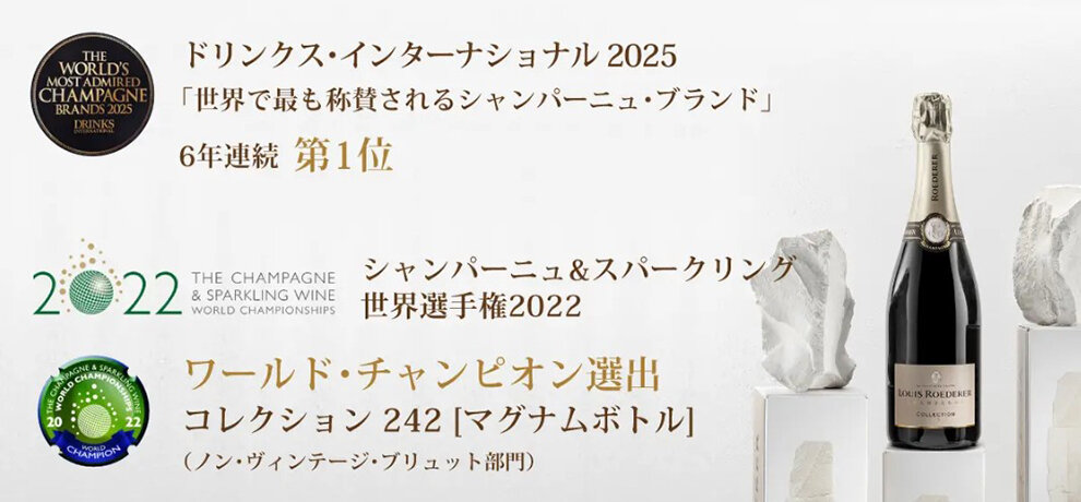 ルイ・ロデレールは1776年の創業当時から、深い洞察力と先見性を持ったクオリティへの飽くなき追求の精神を頑なに守っており、手仕事の芸術品ともいえるシャンパーニュを生み出すことで、愛好家を魅了し続けています。そんなルイ・ロデレールの築き上げてきた功績は世界中で認められており、イギリスの専門誌『ドリンクス・インターナショナル』の「世界で最も称賛されるシャンパーニュ・ブランド2025」にて、ルイ・ロデレールが6年連続の第1位を受賞!