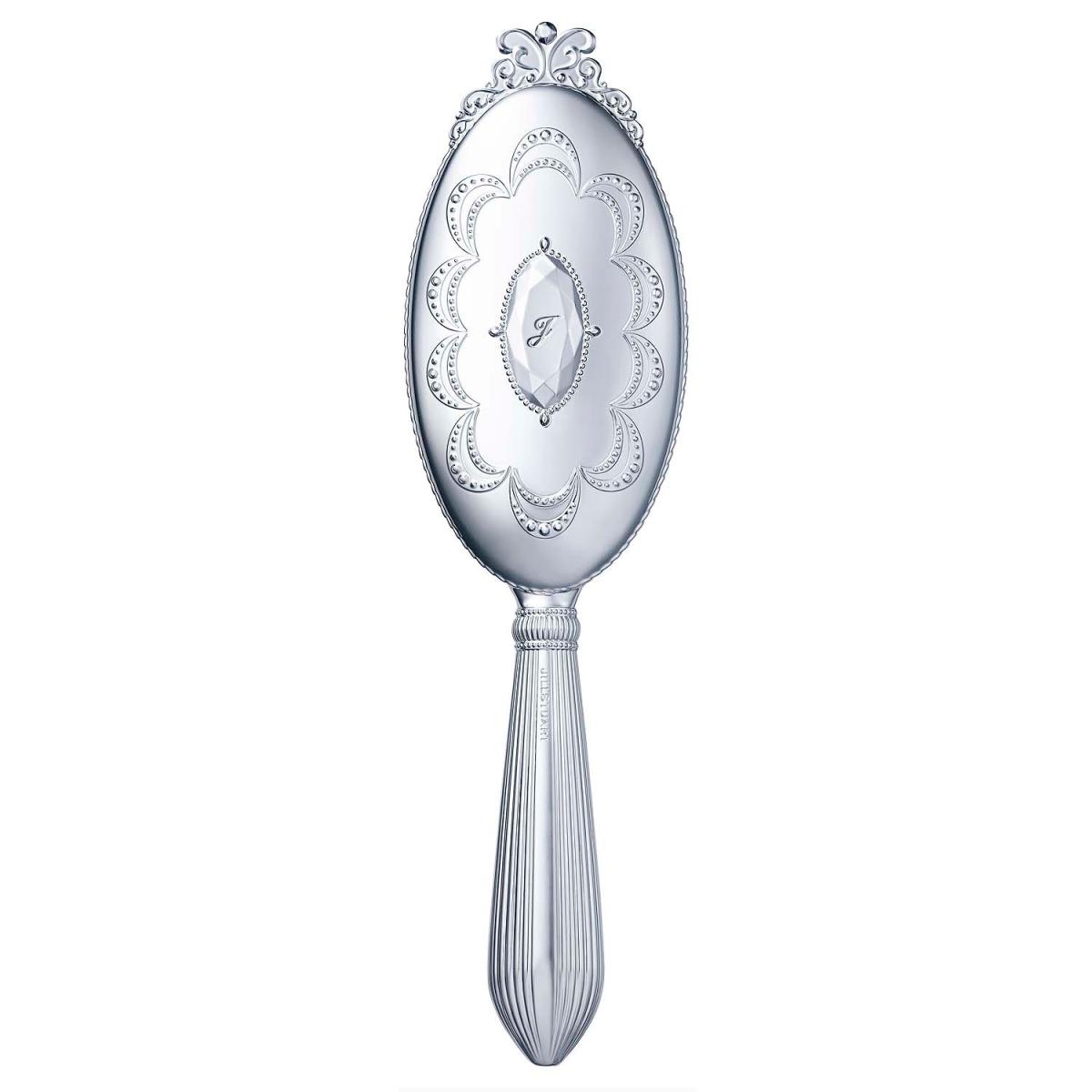 ● 背面はJILL STUARTを象徴するクリスタルと華やかなスカラップ型のネックレス、持ち手部分はヴィンテージのタッセルをイメージ。手にするだけで誰もが優雅な気持ちに浸れるデザインに仕上げました。