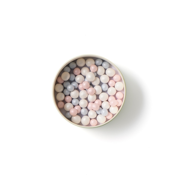肌を明るく魅せる純白のピュアホワイト、幸福感をそっとにじませるラディアンスピンク、透明感を高めるサムシングピュアブルー、3色のカラーボールが混ざり合うことで、繊細なツヤと輝きを肌にオン。