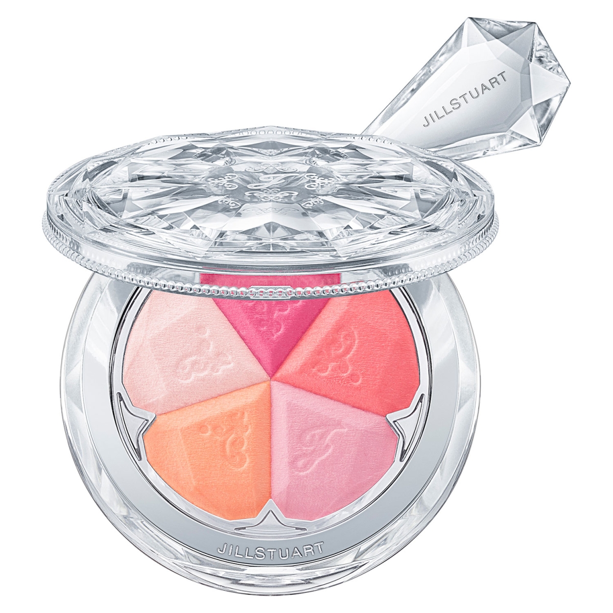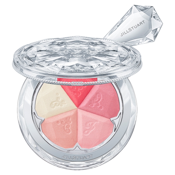 ●しっかり発色するブライトカラー、肌になじませるニュアンスカラー、光をあたえるハイライトカラーが1つになった5色パレットのチークカラー。