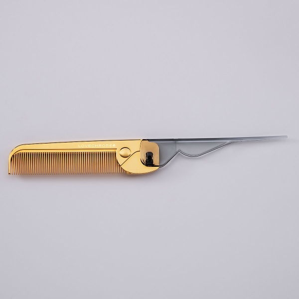 特殊構造により刃を傷めずに折りたたみが可能となった、折りたたみ式ヘアコーム。