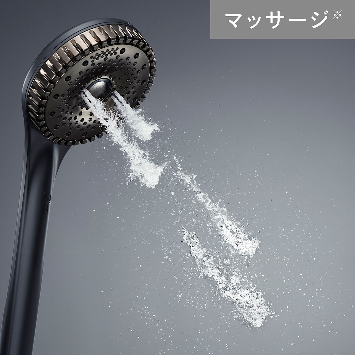 その日の気分や用途に合わせて選べる4つの水流モードに加えマッサージモードを搭載。マッサージモードはリズミカルな強弱のある水流で、肩や背中などを力強く刺激。もっと美しくなれるワンランク上のシャワータイムを。