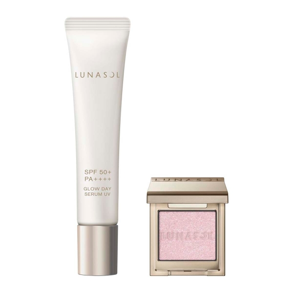 「光をまとう水分チャージUV」グロウデイセラムUVのハーフサイズ(15g)と、涼しげなピンクのクリアなきらめきが美しいモノアイカラーレーション限定色をセット。モノアイカラーレーションは、グロウデイセラムUVの透明感あふれるツヤの秘密であるピンクの微細なピグメントを配合した、このセットでしか手に入らない特別なカラー。肌にもまなざしにも明るい透明感をまとわせる限定キット。
