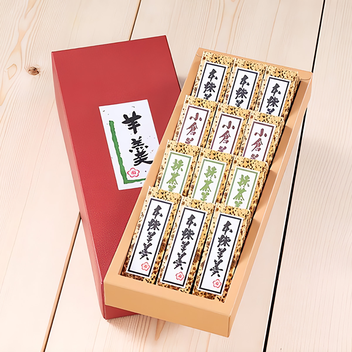召しあがりやすい一口サイズの羊羹です。本煉、小倉、抹茶の3種類のお詰合せ。非常時だけでなく、常備品として持ち運びしやすいサイズもおすすめポイントです。