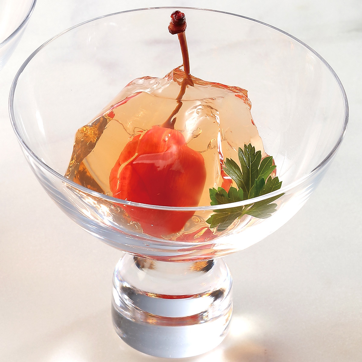 宝石のように美しいぜりぃの中には、甘さすっきりと蜜漬けされたさくらんぼ。