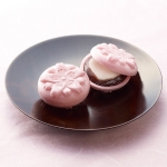 桜色、桜もように桜が香る春いっぱいのもなかです。やさしく桜が香るもなか皮には北海道小豆のこしあんともっちりとした求肥をつめました。