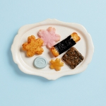 吉祥の象徴である「松竹梅」をテーマに味や形のバリエーションが楽しめるようなおかきを組み合わせました。松は長寿、竹は成長、梅は喜び、それぞれが生命力を表します。3つの組み合わせには健やかで末永い幸福への願いが込められています。