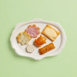 人気の「チーズおかき」に、長寿の象徴として「菊の花」や「亀」をかたどったおかきを組み合わせました。夫婦円満・永遠の愛を象徴する鶴、繁栄や健康の象徴とされる亀、2つの組み合わせには、末永い幸福や長寿への願いが込められています。