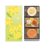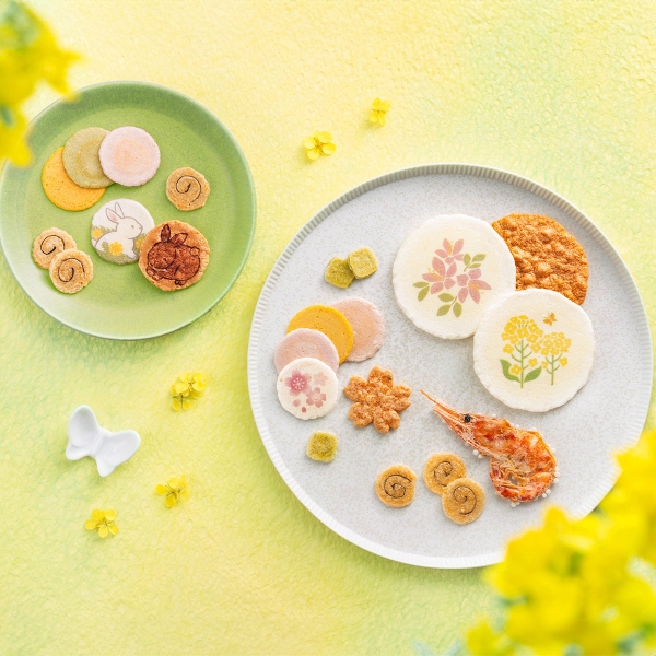あたたかな春の陽ざしに向かって真っすぐのびる菜の花、次々と色とりどりに咲くつつじ、柔らかな風に舞いあがる桜。タンポポの咲いた野原では、野うさぎたちが駆けまわり、冬が終わり自然が豊かに色づく春をよろこびます。陽の光に照らされて花々が咲き始める心躍る春の情景をうつした詰合せです。