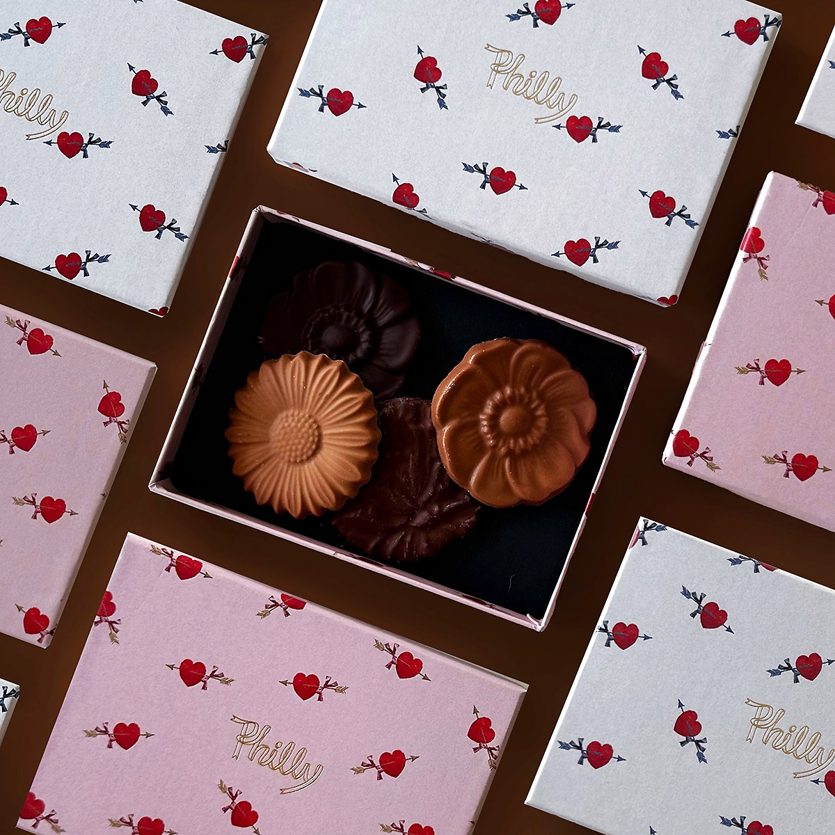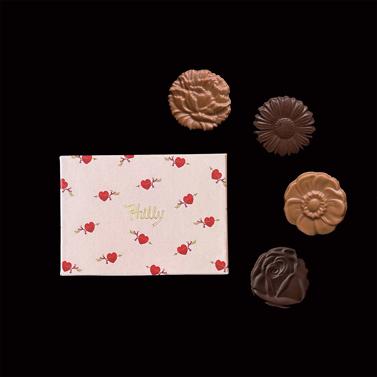 やわらかなピンクに矢のモチーフをあしらった、遊び心のあるデザイン。大切なお母さんへ「ありがとう」の気持ちをさりげなく届ける、母の日にぴったりのミニギフトです。Phillyらしい繊細な造形のチョコレートと、ファッション感覚で楽しめるパッケージが魅力。気負わず贈れるサイズ感で、日頃の感謝をスマートに伝えられます。