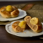 栗をふんだんに使った恵那川上屋特製のマロンパイ。渋皮を残しながらパティシェが丁寧に炊き上げた栗きんとん餡を包みました。しっとりとしたパイ生地に、素材本来の風味が引き立つ甘さ控えめの栗餡、トッピングした甘露煮の食感が絶妙なハーモニーを醸し出します。