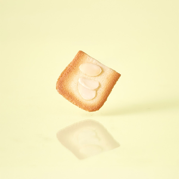 スライスアーモンドをのせてサクッと焼き上げ生地をふたつに折ったクッキーです。