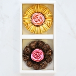 北海道産の生クリームを使用した、ミルキーなくちどけのラングドシャを、フランス産のチョコレートを使用したローズチョコで飾ったリングバニラローズチョコと、チョコレートの奥深い甘みとサクサク軽い食感が特徴のクランチローズチョコの詰め合わせ。