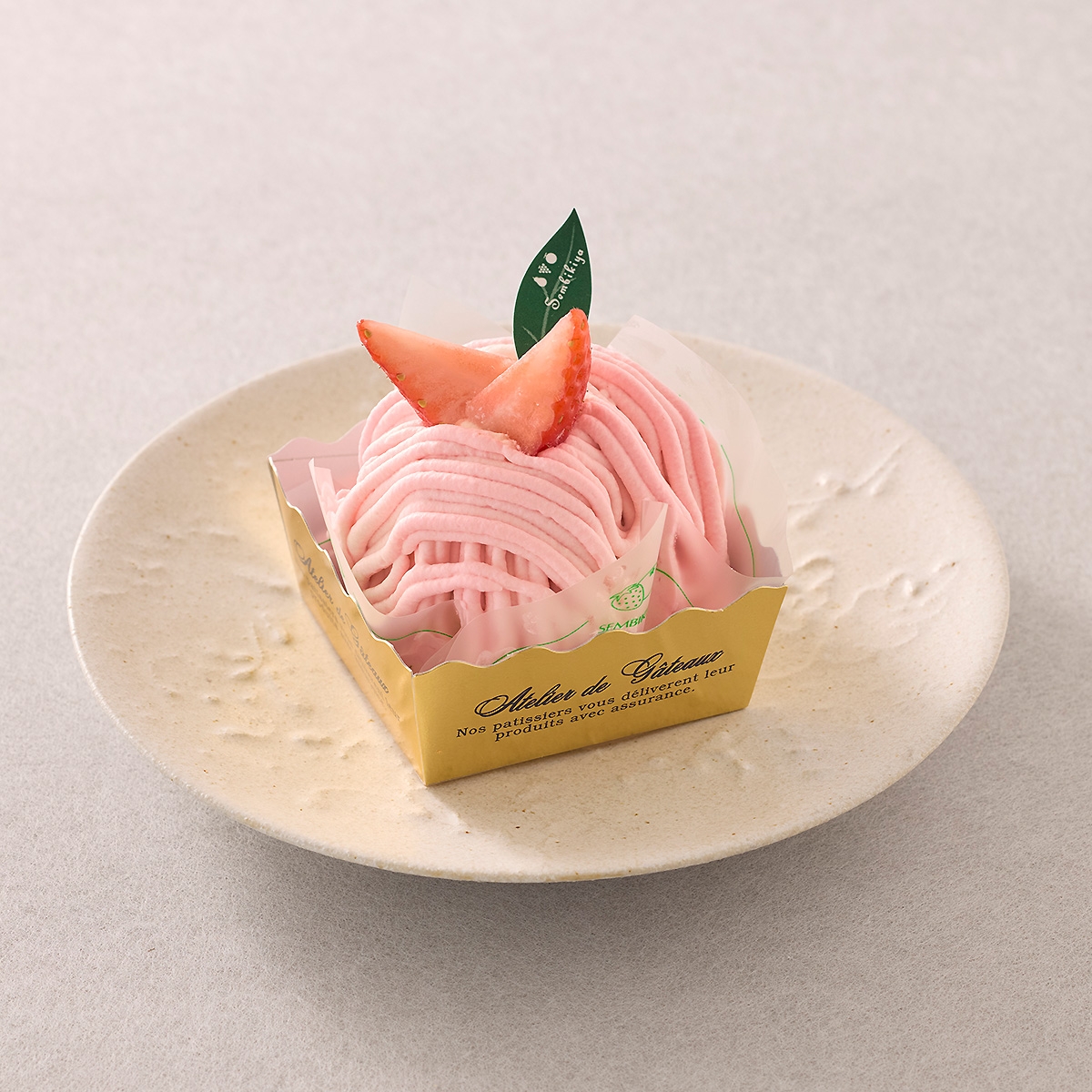 桜がふんわりと香るクリームをたっぷり使用し、やさしい色合いと香りで春の訪れを感じさせるモンブラン。中にはさくさくのクランブルとなめらかな生クリーム、そして甘酸っぱい苺をしのばせました。桜のやわらかな香りと上品な甘さで春を感じる、東横のれん街限定のケーキです。