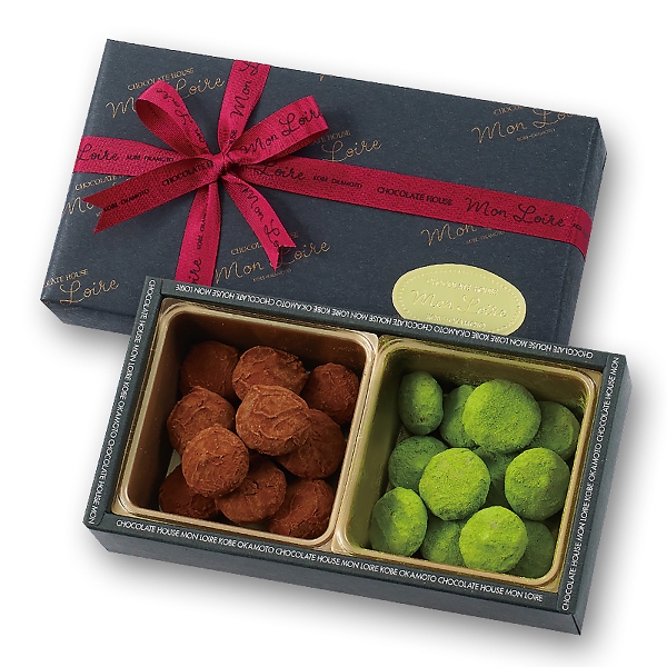芳醇な香りのブランデーを、ミルク、ダークの2種のガナッシュに効かせたトリュフと、抹茶を使用したホワイトチョコレートベースのガナッシュに、たっぷりの抹茶パウダーで仕上げた濃厚なトリュフ。こだわりの2種をぜひお楽しみください。