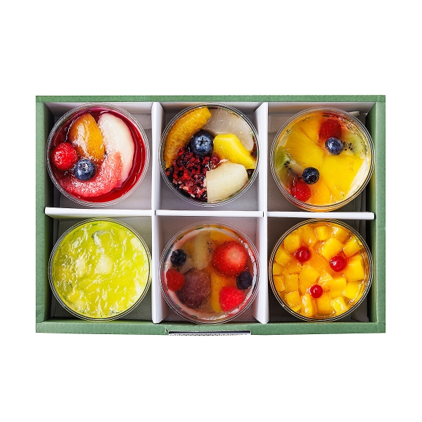 マスクメロンババロア(120g)、マンゴームース(120g)、フルーツレアチーズ(123g)、フルーツゼリー(152g)、チョコレートムース(120g)、フルーツババロア(132g)各1個 計6個