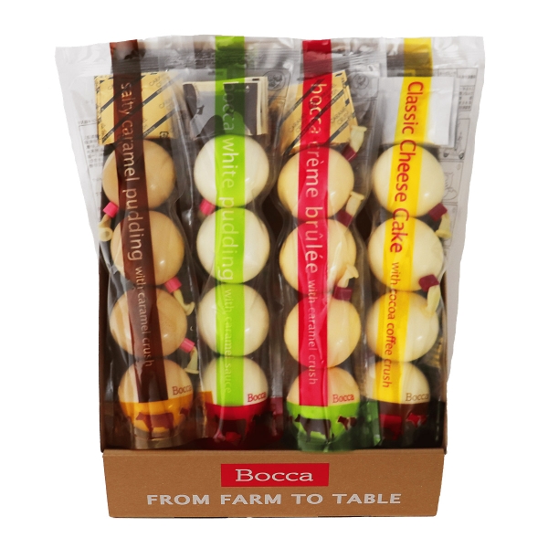 牧家の白いプリン4個入320g×1、牧家のクレームブリュレ4個入308g×1、牧家の塩キャラメルプリン4個入308g×1、牧家のクラシックチーズケーキ4個入308g×1