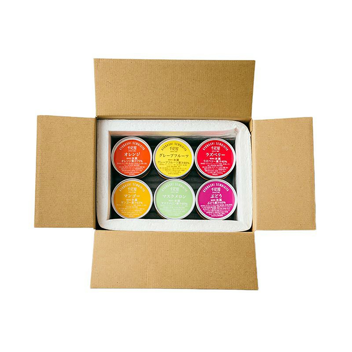 マスクメロン・オレンジ・ラズベリー・マンゴー・ぶどう・グレープフルーツ×各2個 各種100ml