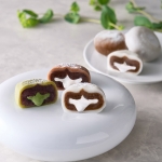 加熱方法にこだわり、香り高く仕上げたコーヒー餡を使ったカフェオレ大福、福岡の八女茶をもち生地、クリームに使用した抹茶クリーム大福、オランダのデザーン社の香り高いココアを使用したショコラクリーム大福をセットしました。ホイップクリームはあえて柔らかく仕上げており、口の中でとろけます。