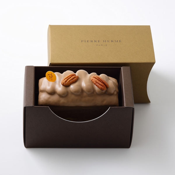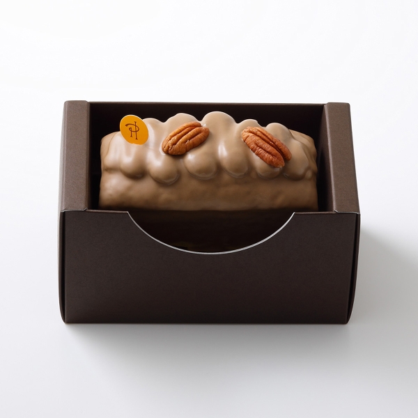 ピーカンナッツの魅力がたっぷり詰まったパウンドケーキです。柔和でほろ苦いピーカンナッツの独特な風味が、しっとりとしたビスキュイ、さくさくしたプラリネ、さらにとろりとしたクリームに付与され、素晴らしい食感のコントラストが演じられています。