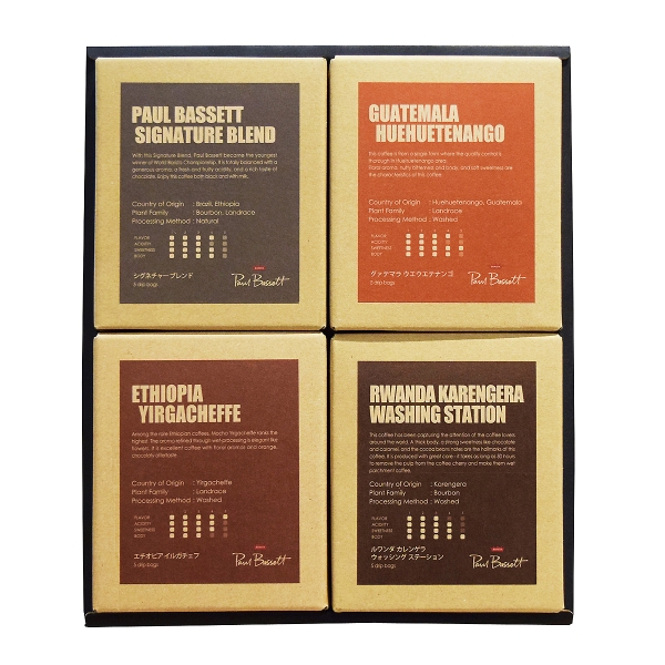 シグネチャーブレンド8g×5pc、エチオピア イルガチェフ8g×5pc、ルワンダ カレンゲラ8g×5pc、グアテマラ ウエウエテナンゴ8g×5pc