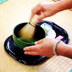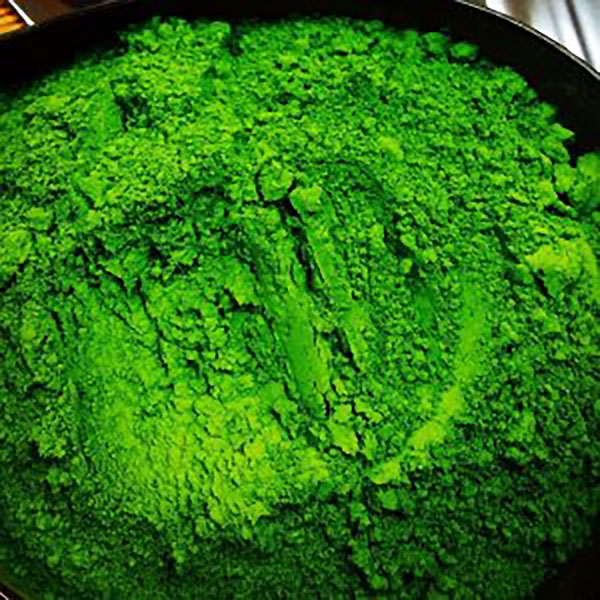 玉露の産地として名高い静岡県藤枝市岡部町にて遮光栽培した碾茶(てんちゃ。抹茶の原料)を、石臼で挽いた、奥行きのある味わいと鮮やかな緑色、きめ細かい泡立ちが特徴の抹茶です。