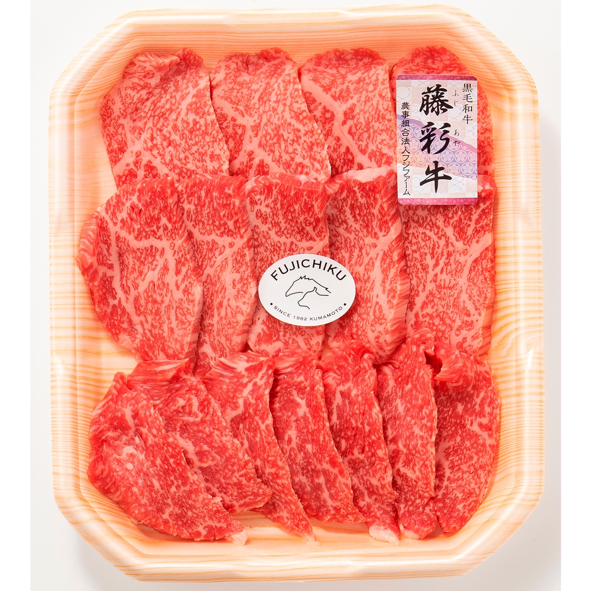 黒毛和牛の専門店<フジチク>の独自ブランド黒毛和牛<藤彩牛>。赤身とサシのバランスが良く、柔らかい肉質が特徴です。最もポピュラーなモモ肉は旨みが強く適度に入ったサシの甘みが肉の旨みを引き立てます。そのお肉を職人が焼肉用に加工いたしました。
