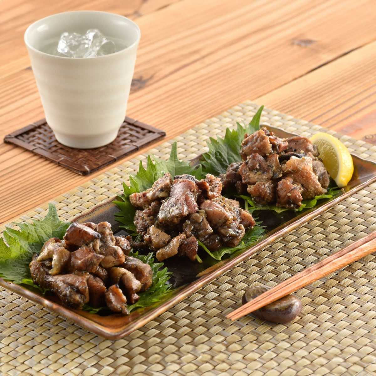 炭火で丹念に手焼きした宮崎名物<鶏の炭火焼>。素材の旨みをそのままに炭火で燻された風味豊かな炭火焼。黒胡椒、ニンニクの効いたスパイシーな味わいの山賊焼。オリーブオイル、バジル、パセリなど風味豊かなタレを使ったハーブ焼の3種の味が楽しめます。