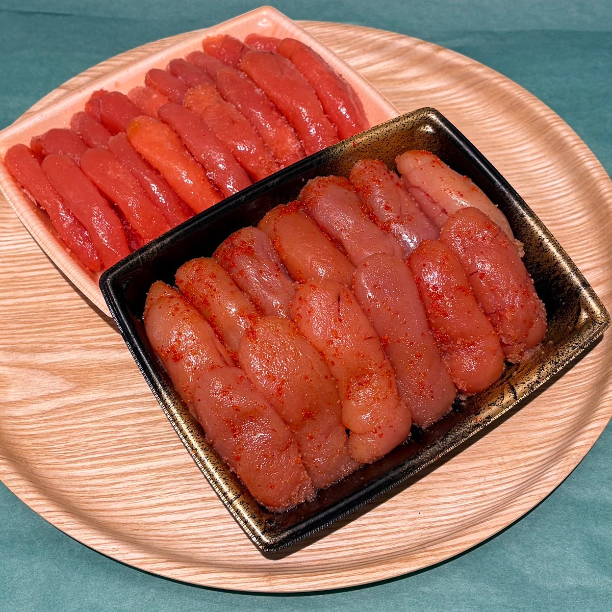 たらこ、明太子は共にスケソウダラの卵巣を塩漬けたものです
