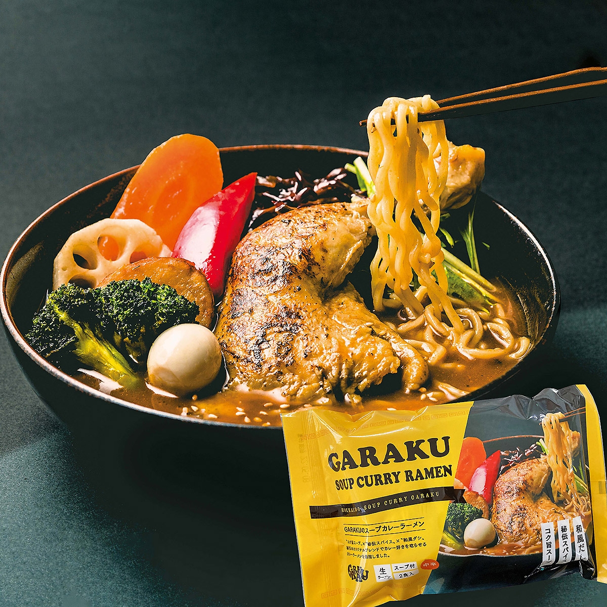 札幌の人気スープカレー店≪GARAKU≫監修のコク旨スープ×秘伝スパイス×和風ダシの新感覚スープカレー生ラーメン。