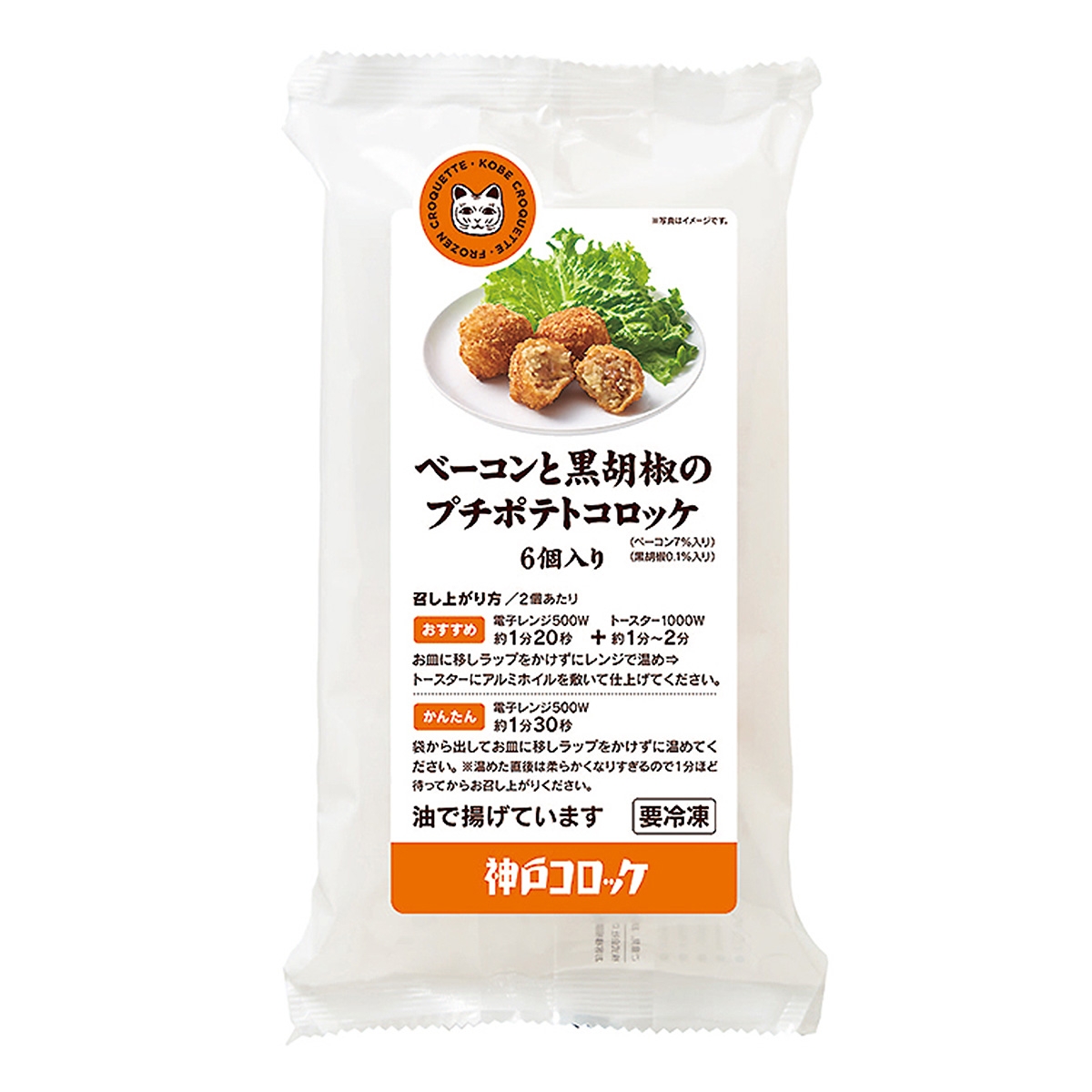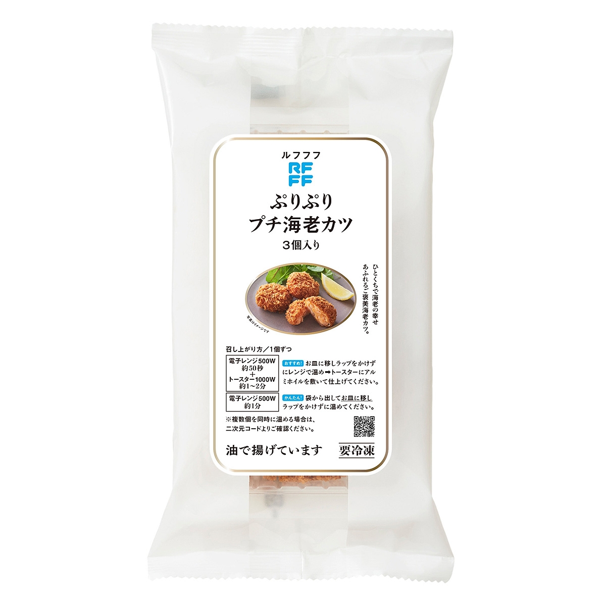 ぷりぷりプチ海老カツ3個入り(115g)×1P、北海道産とうもろこしのプチクリームコロッケ6個入り(180g)×1P、ベーコンと黒胡椒のプチポテトコロッケ6個入り(165g)×1P