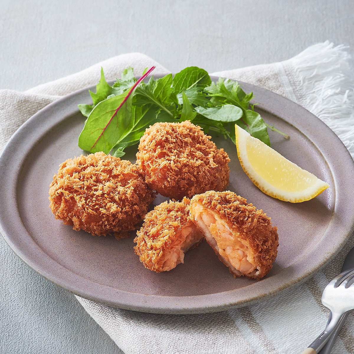 レンジで温めるだけで揚げたての美味しさ。海老の美味しさまるごと詰まったプチ海老カツと、2つの味わいのプチコロッケの詰め合わせ。食卓で使い勝手の良いかわいいサイズのプチセット。