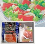 脂ののりの良いアメリカ産の紅鮭を、昔ながらの製法にこだわって食塩と砂糖だけで味付けしたスモークサーモンです。