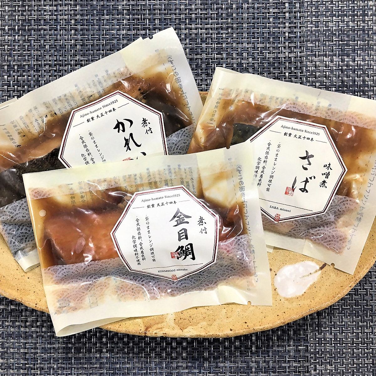 金目鯛煮付、さば味噌煮、かれい煮付×各1切
