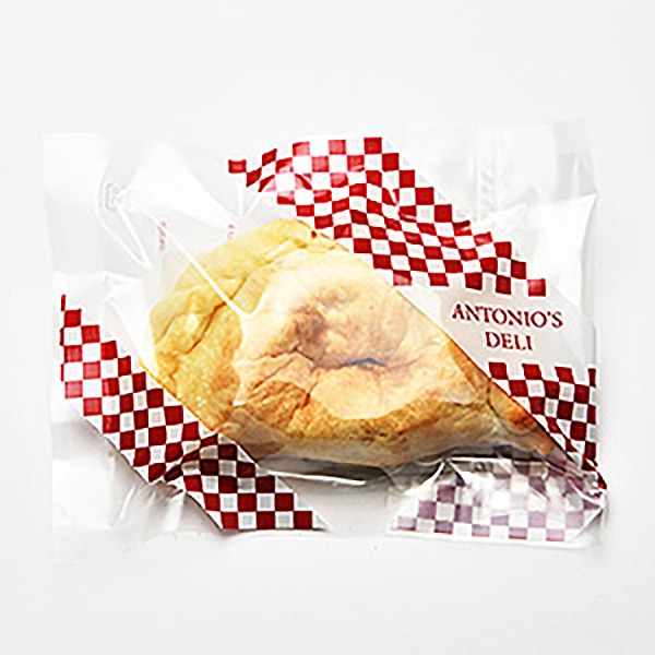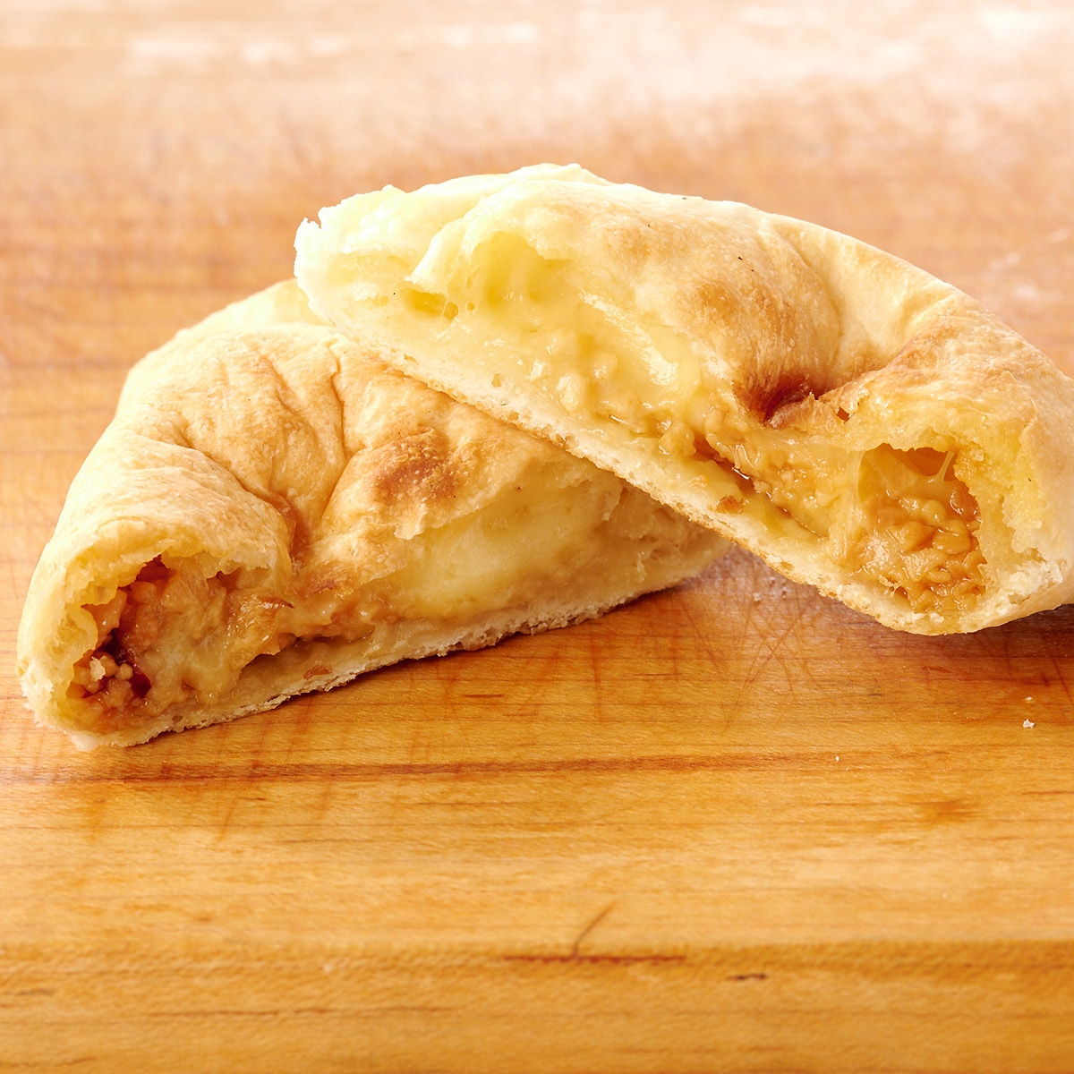 ピッツァ生地で具を包んで焼き上げた包み焼きピッツァです。フライドガーリックと唐辛子が入ったピリッと辛いカルツォーネです。