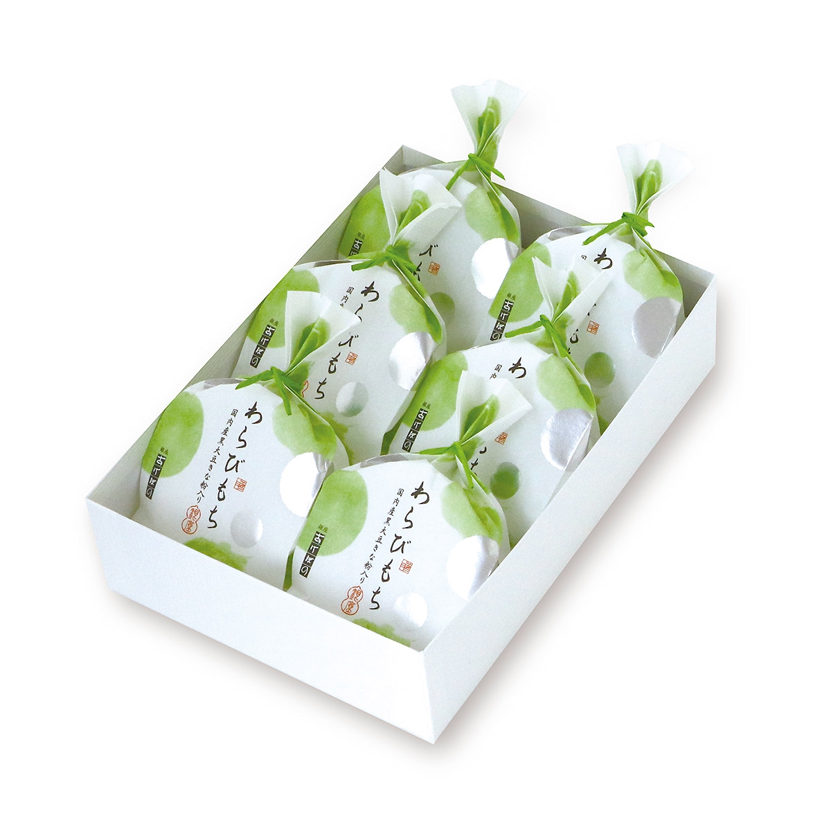 香ばしい黒大豆きなこと濃厚な黒蜜をかけておいしいつるりとみずみずしい食感のわらびもちです。「お母さんありがとう」の掛紙をかけて発送いたします。