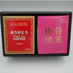 ありがとうブレンド、プリンセス将軍珈琲のドリップバッグ各5枚の詰合せです。いつも愛情を注いでくれるお母さんに、華やかなコーヒータイムをぜひ。